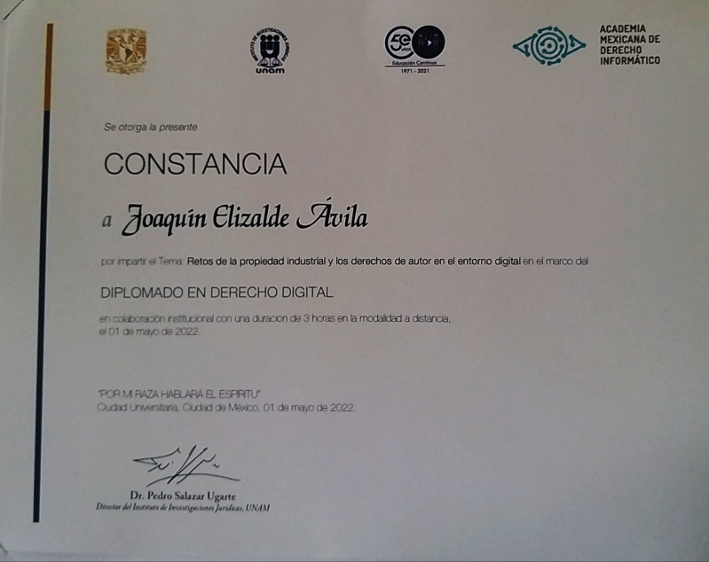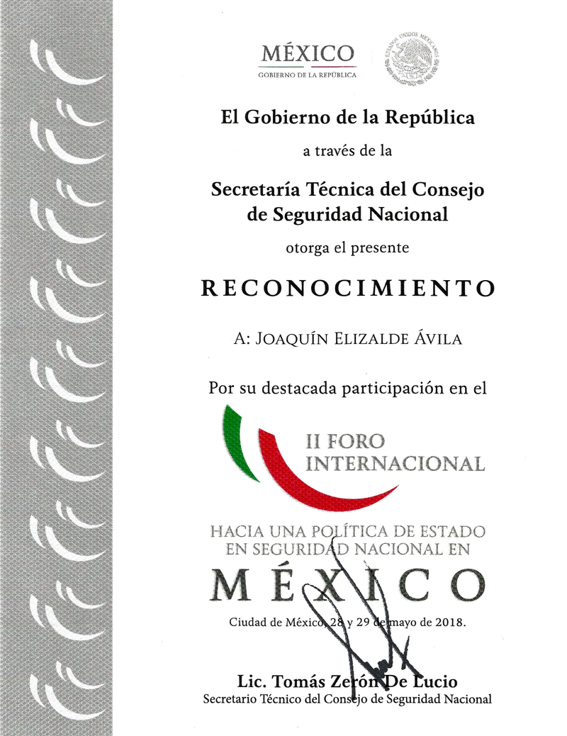 Los logros profesionales y académicos obtenidos por el Dr. Joaquín Elizalde Ávila han sido reconocidos por sus conocimientos y aportaciones jurídicas por distintas instituciones y organizaciones nacionales y extranjeras.